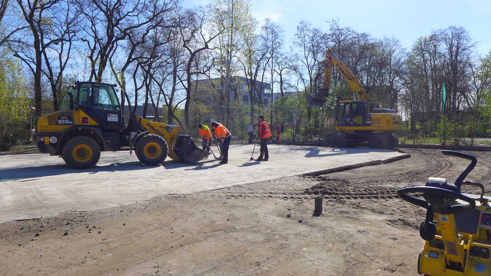 Neue Kantensteine mit der erforderlichen Höhe für den zukünftigen Platzbelag.