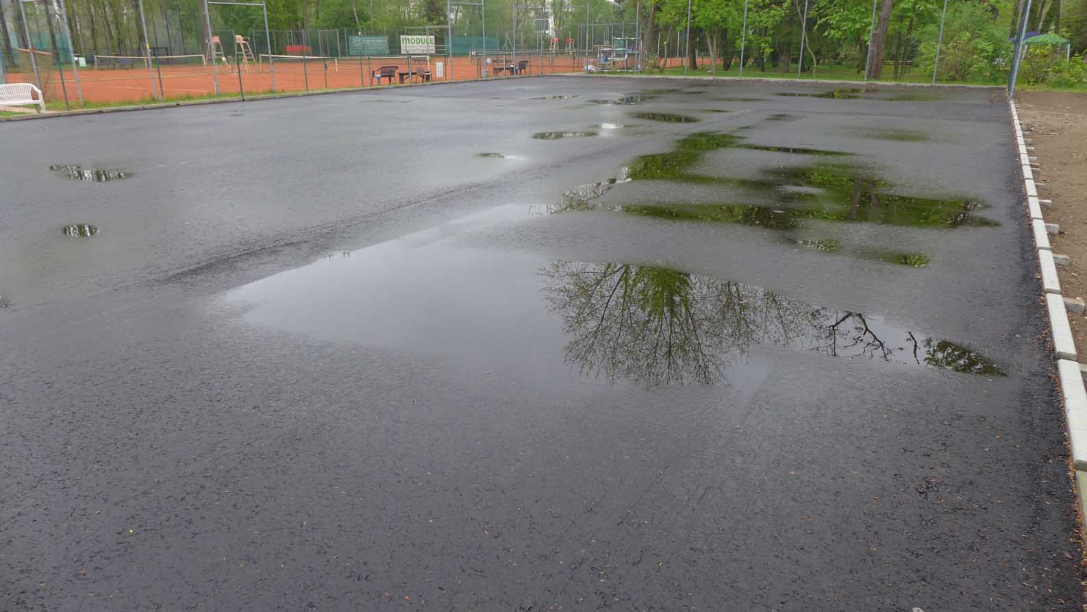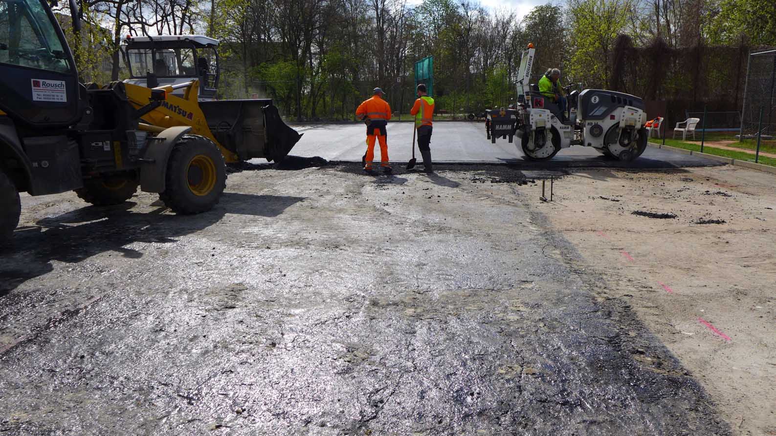 ...und fertig ist der Asphaltbelag als Tragschicht für den Kunstrasen.