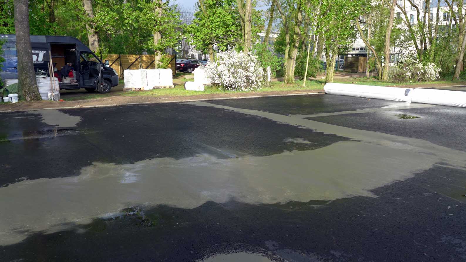 Die oberste Deckschicht wird an die Höhe des vorhandenen Betons angeglichen.
