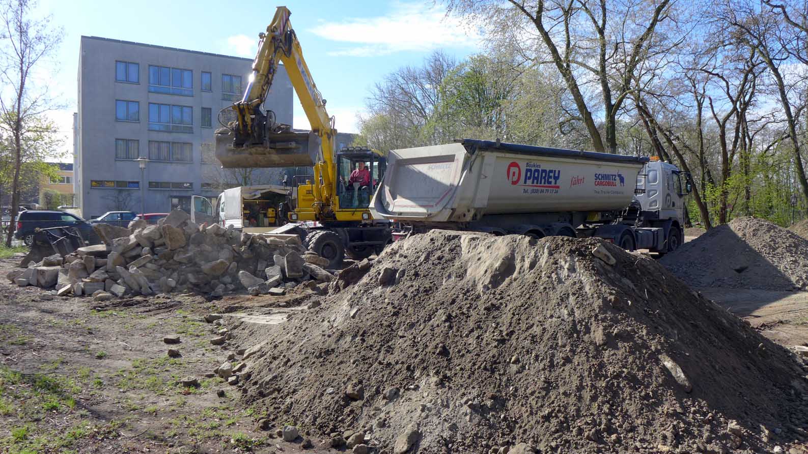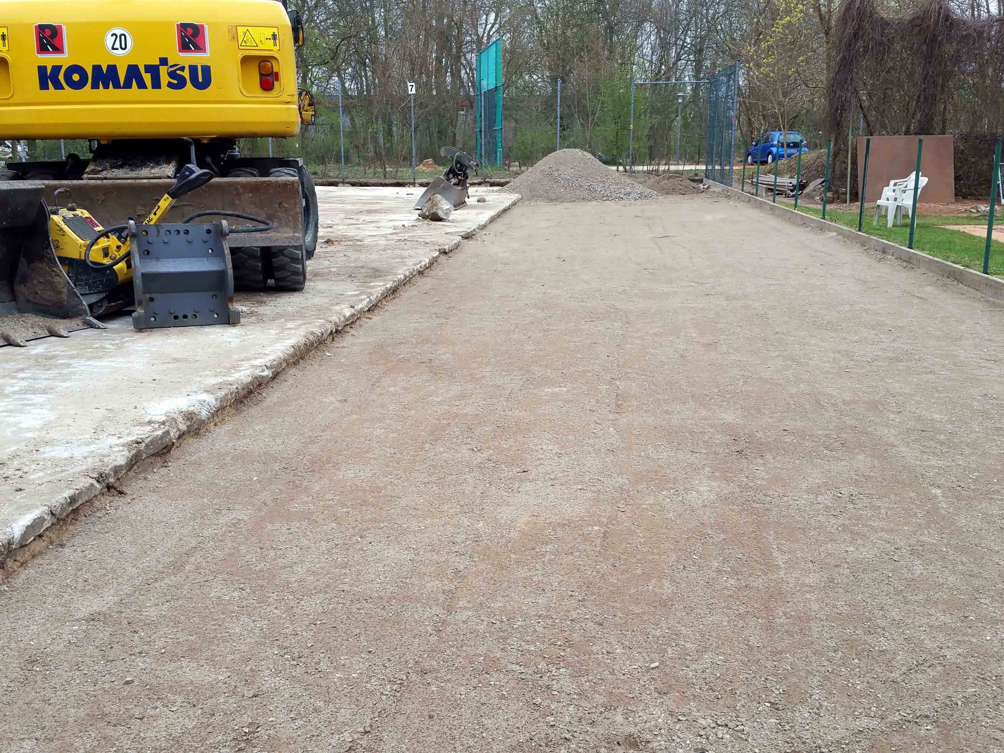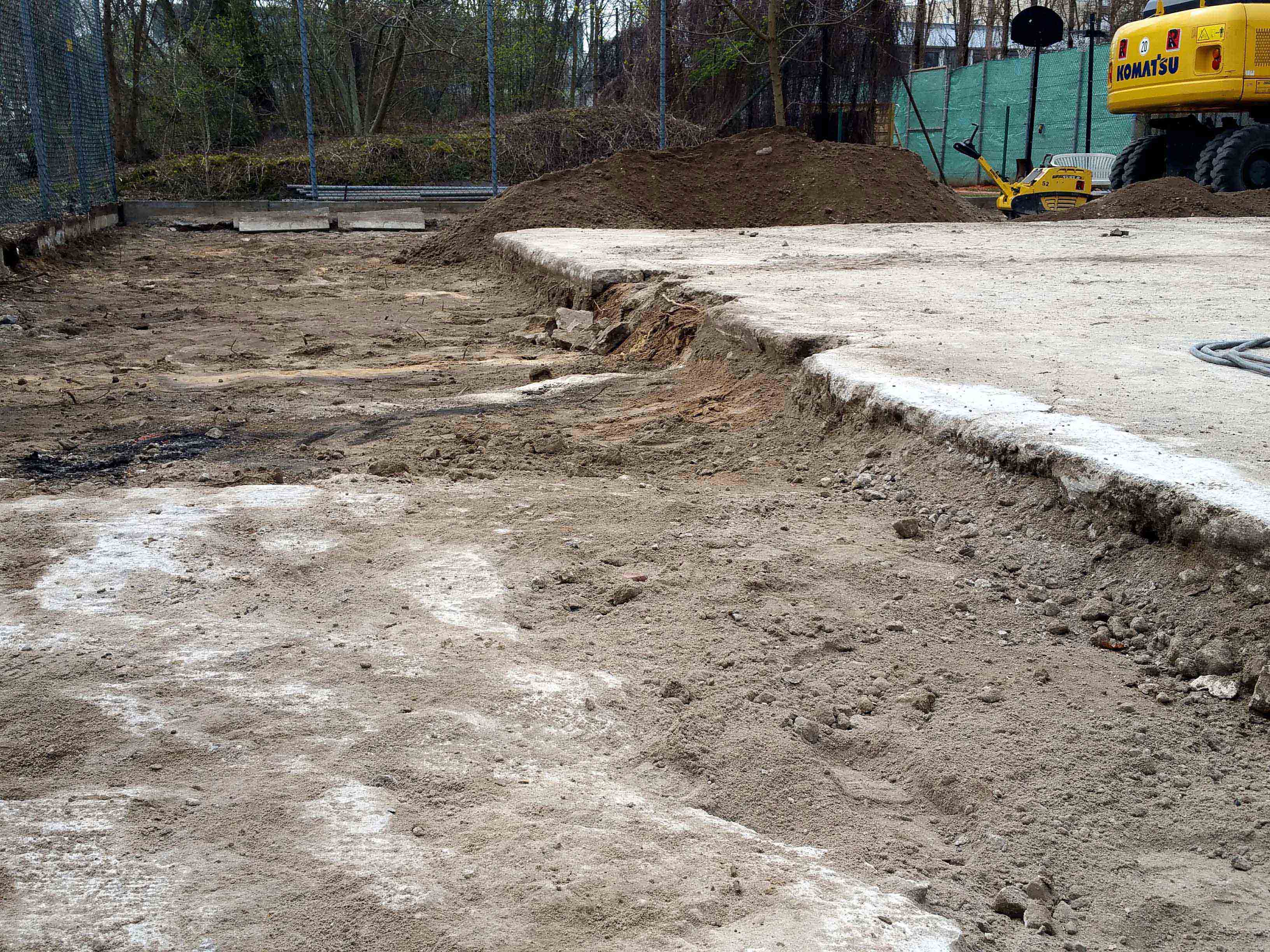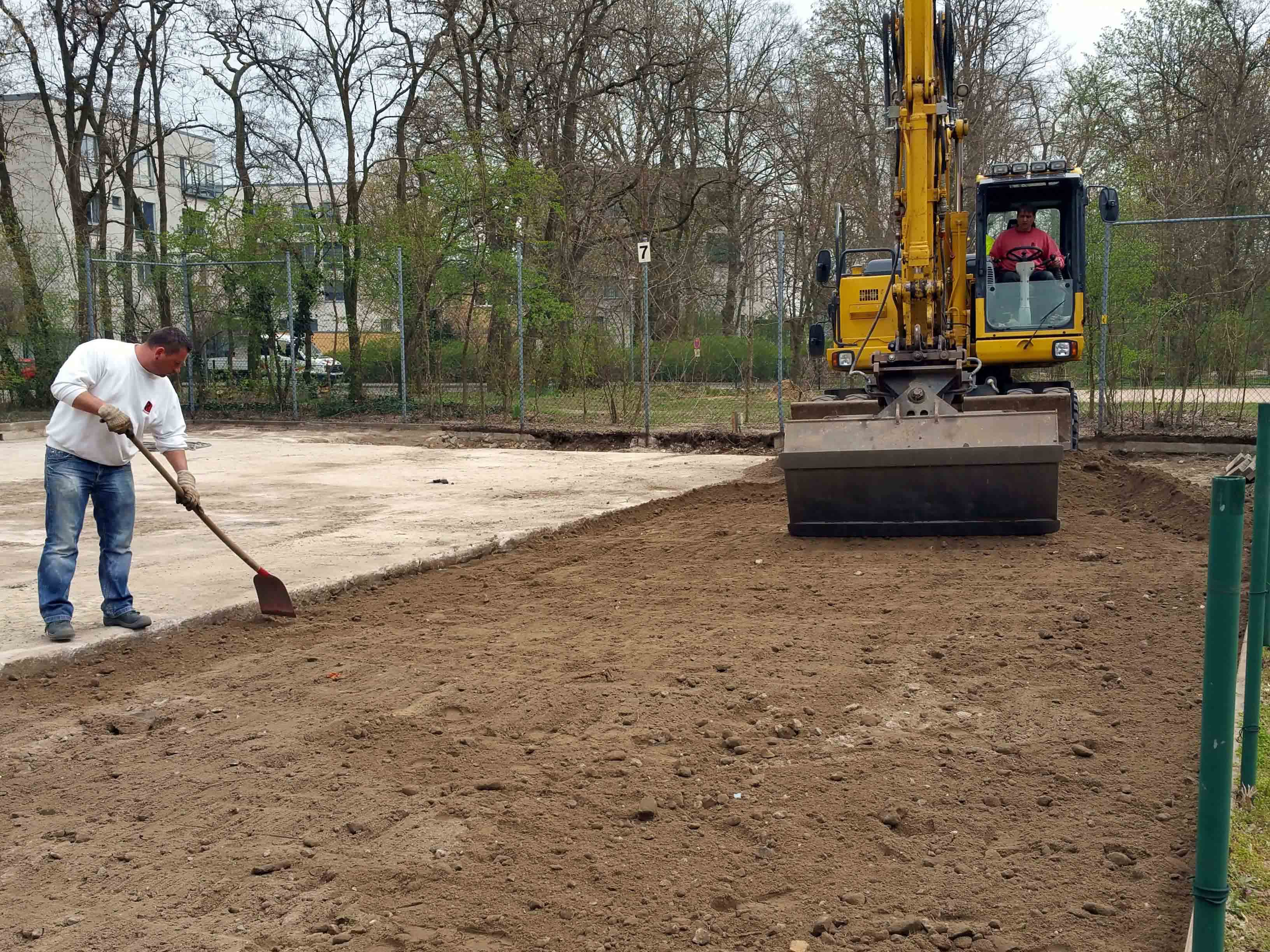 Ein Viertel der Platzfläche ist Sand- und Geröllboden und muß 30 cm tief abgetragen werden.