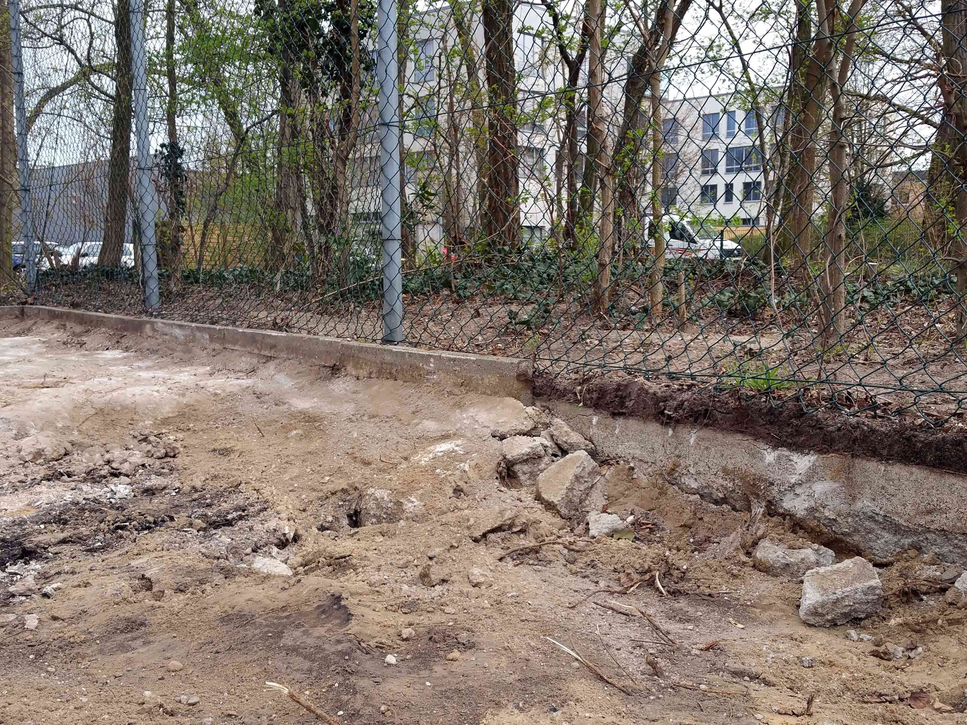 Nach Abriss des alten Kunstrasens: Eine Beton- und Geröllwüste.